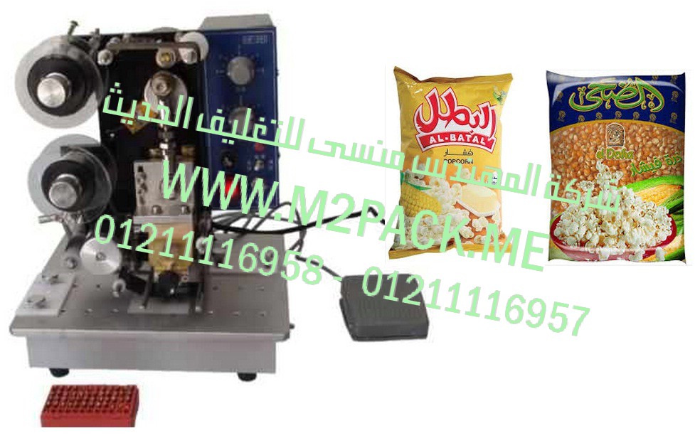 ماكينة طباعة تاريخ الانتاج و تاريخ الصلاحية على اكياس الفشار موديل إم تو باك 322 ماركة المهندس منسي :