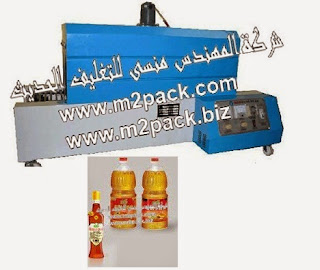 [الات تعبئة وتغليف ماكينات تعبئة و تغليف مواد التعبئة والتغليف خامات اكياس التعبئة والتغليف] ماكينة تغليف زجاجات زيت السمسم بفيلم الشرنيك الحراري موديل 104 إم تو باك :