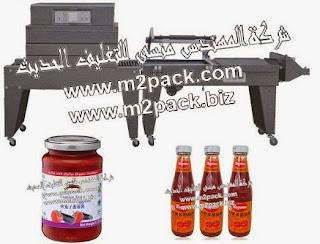 ماكينة تغليف زجاجات الكاتشاب  بفيلم الشرنك الحراري مع ماكينة اللحام والقطع شكل  Lنصف اتوماتيكية موديل 108  النموزجية إم تو باك :