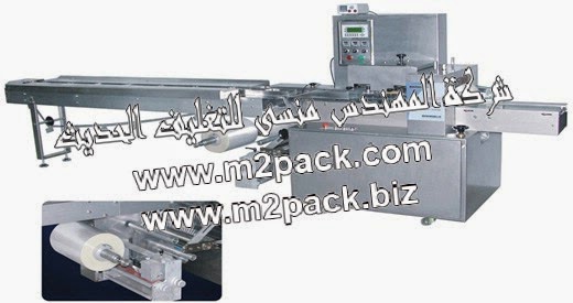 [ماكينات التعبئة والتغليف و خامات التغليف] ماكينة التعبئة والتغليف فلو باك والموجود بها رول التغليف من اسفل التي نتشرف نحن شركة المهندس منسي للصناعات الهندسية والتغليف الحديث ام تو باك :