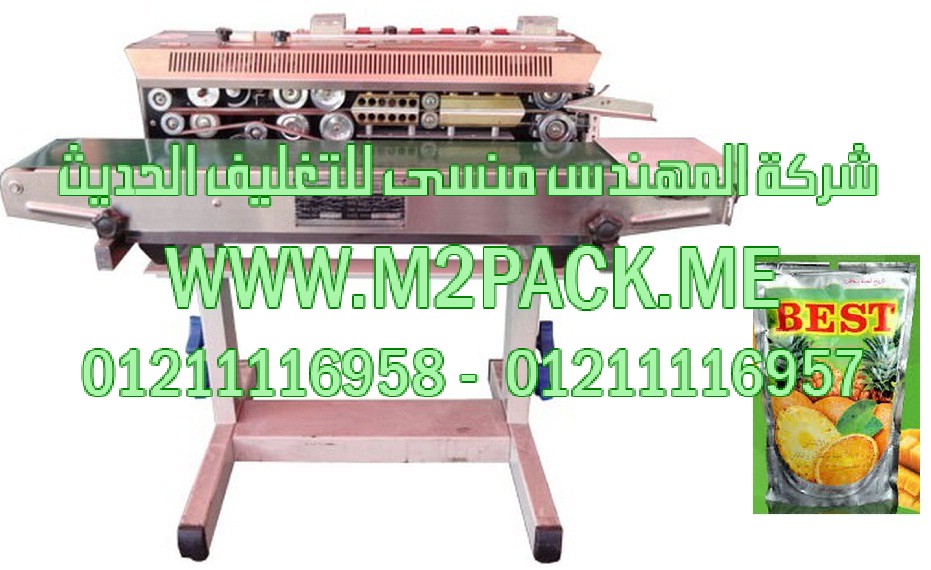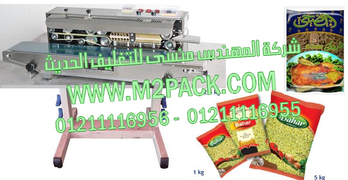 ماكينات لحام اكياس وماكينات طباعة تاريخ انتاج سلسله من ماكينات لحام السير للحام الاكياس موديل إم تو باك 306 ماركة المهندس منسي
