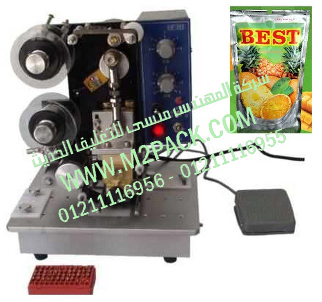 ماكينات لحام اكياس وماكينات طباعة تاريخ انتاج ماكينة طباعة تاريخ الانتاج و تاريخ الصلاحية على اكياس العصير بيست موديل إم تو باك 322 ماركة المهندس منسي