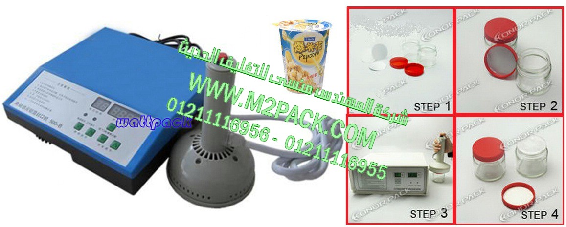 ماكينات اندكشن سيل ماكينة لحام طبات الالومنيوم على فوهة علب الفشار بواسطة الحث الكهرومغناطيسي موديل إم تو باك 202 ماركة المهندس مــنســـي