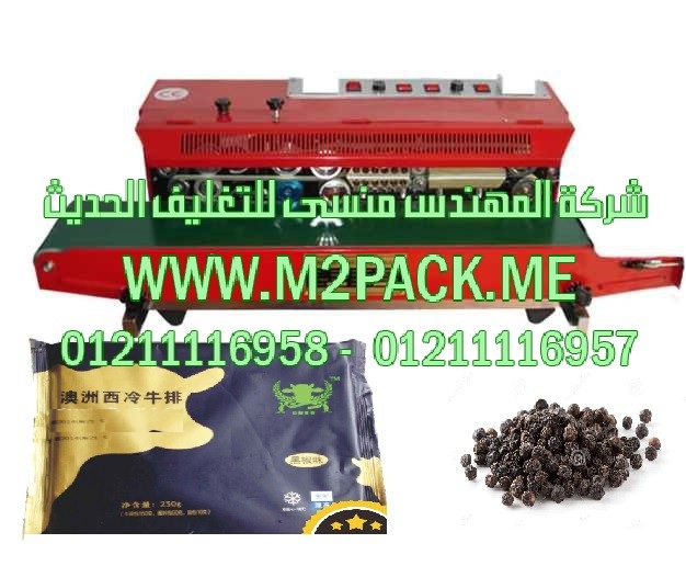 ماكينات لحام اكياس وماكينات طباعة تاريخ انتاج ماكينة متعددة الوظائف للحام أكياس الفلفل الأسود عن طريق فيلم البلاستيك موديل إم تو باك 301 ماركة المهندس منسي
