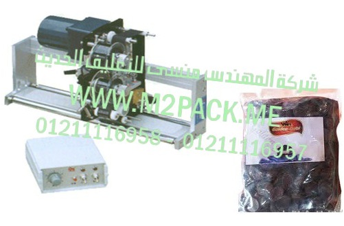 ماكينات لحام اكياس وماكينات طباعة تاريخ انتاج ماكينة لحام أكياس قطع الشيكولاتة موديل إم تو باك 302 ماركة المهندس منسي